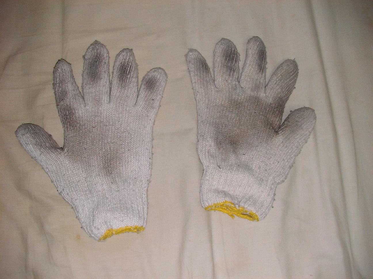 これは作業着店なんかだと10セット入って200円とかであるんで経済的だし、かなり汚れたら使い捨てられるんでいいっす♪(これもかなり汚れてますが・・・)