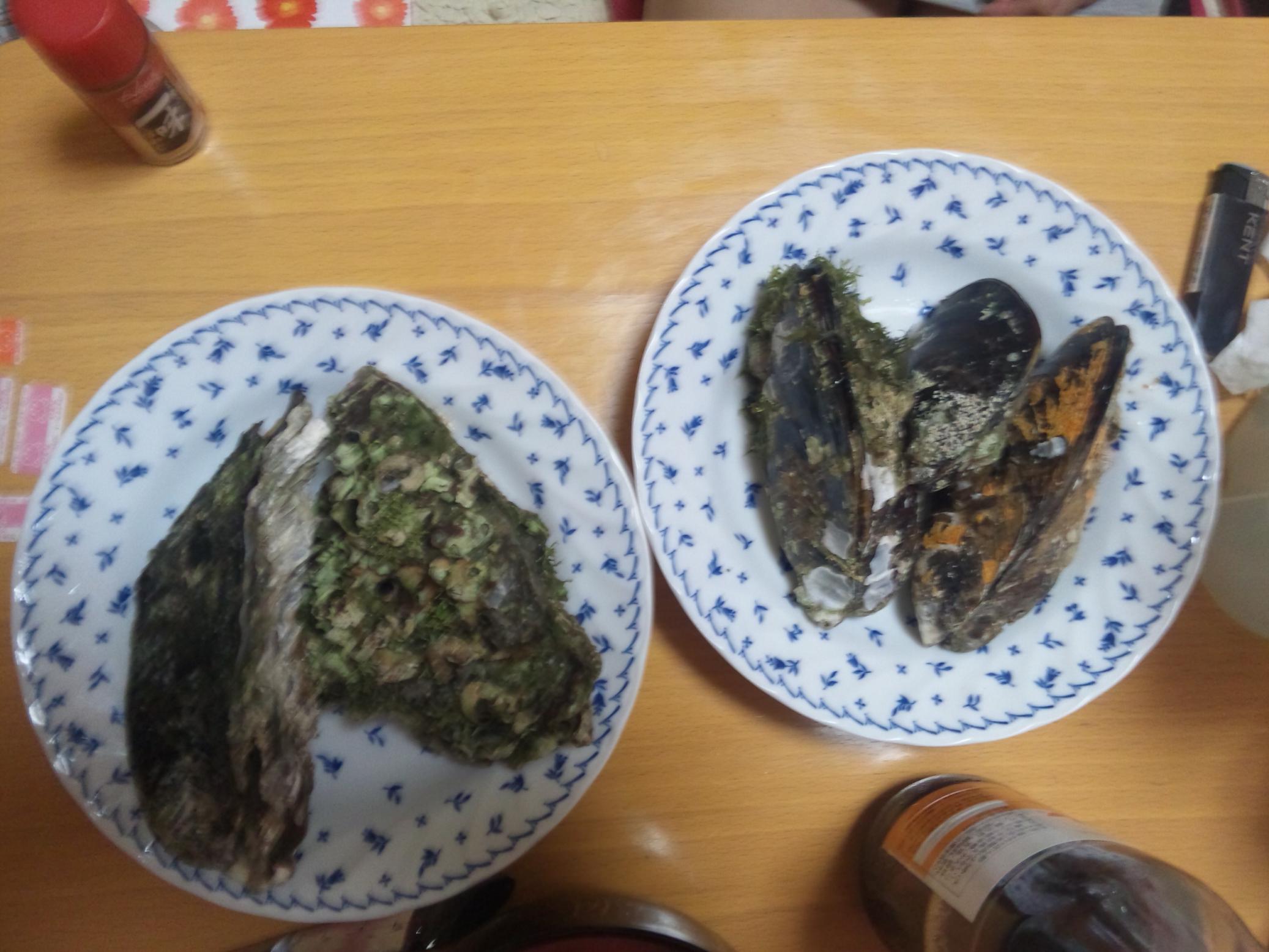 日曜日の晩飯は嫁のお父さんが取ってきた岩ガキに瀬戸貝!!それにサザエ!!